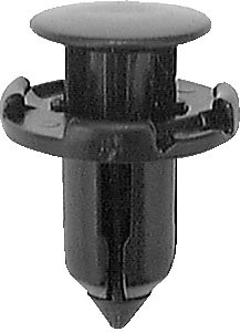 Black Nylon "Mitsubishi" Push Type Retainer. This black, fender-bumper style retainer has head diameter of 18mm, a stem diameter of 9mm, and a stem length of 12mm.