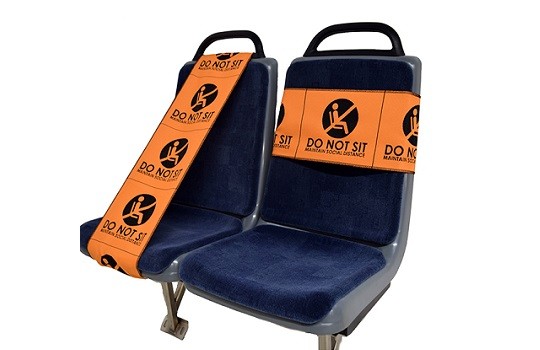 The Double Seat Band is a PPE item to keep passengers from sitting in certain seats so they are distanced from each other on transit vehicles.